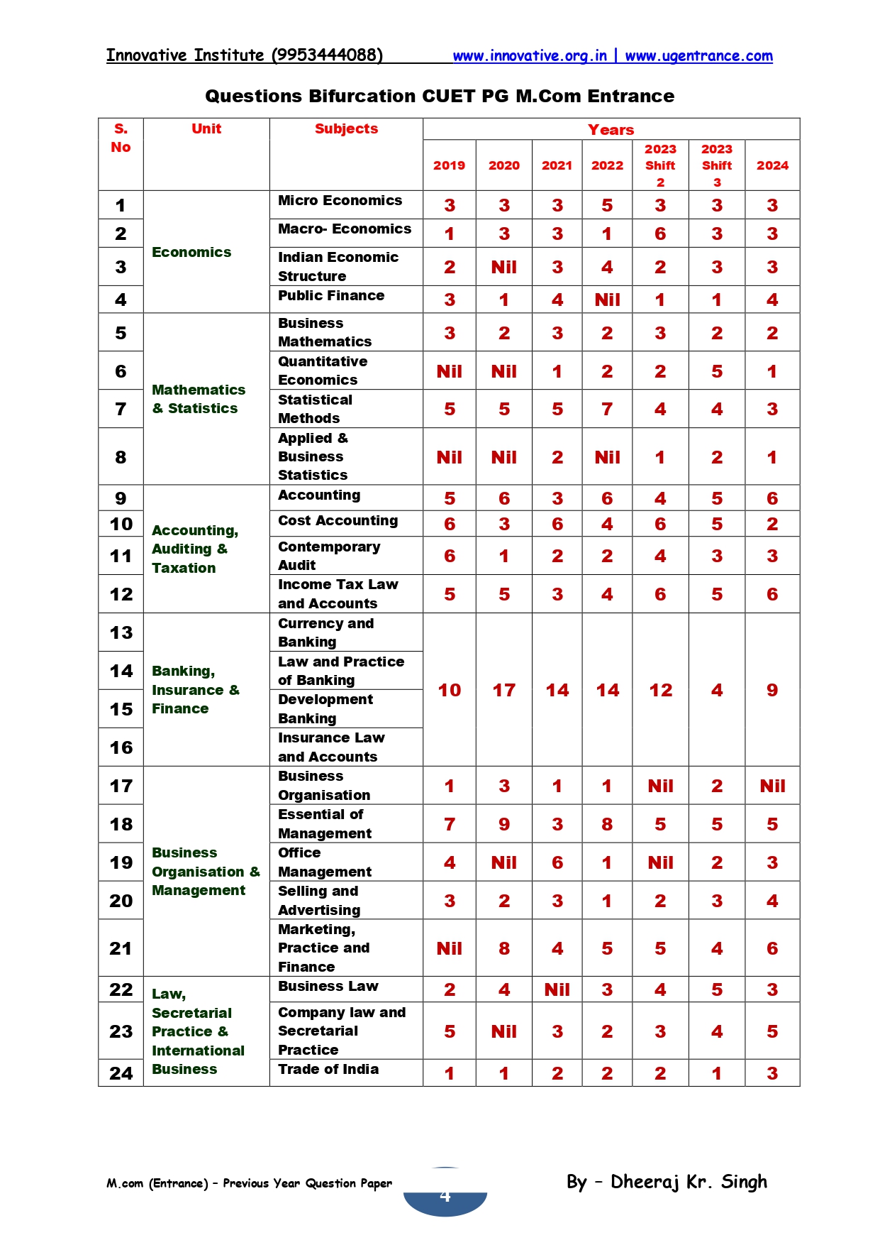 M.Com Entrance (CUET) Examination – Unit Business Law